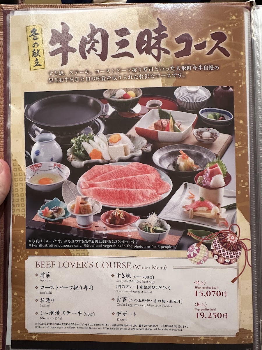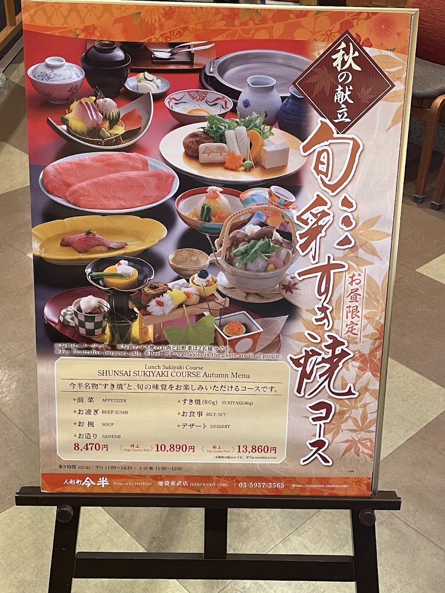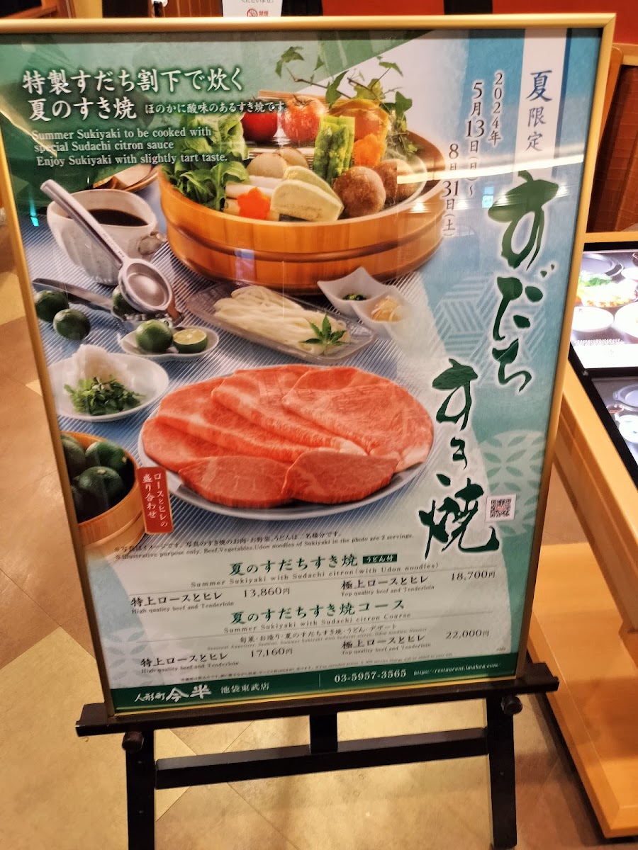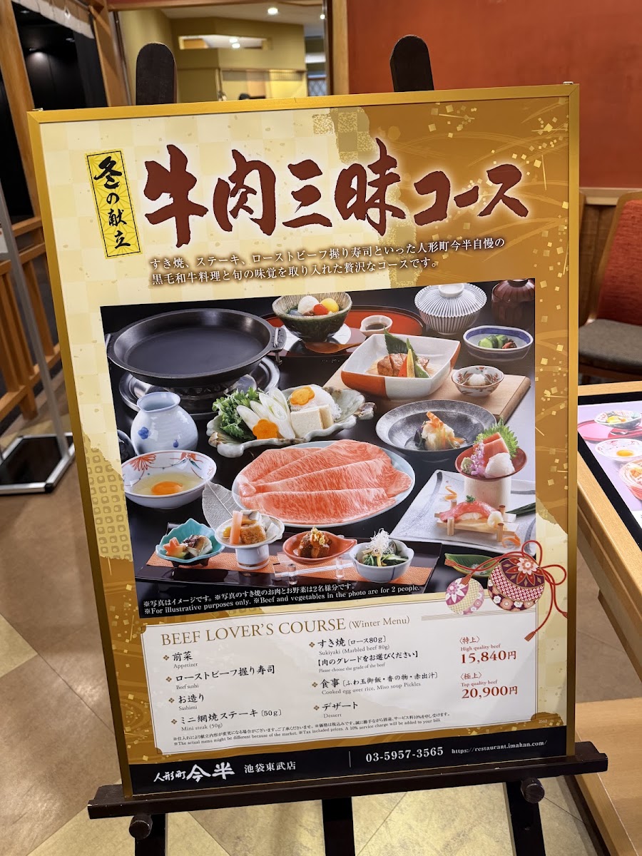 The menu at Ningyocho Imahan Ikebukurotobuten offers a range of high-quality Japanese dishes, with an emphasis on premium cuts of meat and traditional flavors. The standout offering is their Sukiyaki (特上), which is the restaurant's signature dish, known for its tender and well-marbled beef. While the price for this dish is not listed, it's widely regarded as a top-tier dining experience. In addition to Sukiyaki, the menu also features a variety of other dishes that highlight the restaurant's commitment to quality ingredients and authentic Japanese cuisine. The atmosphere of the restaurant, located in the Spice section of the restaurant street on the 15th floor, complements the refined offerings, making it an ideal destination for those seeking a memorable meal in Ikebukuro.